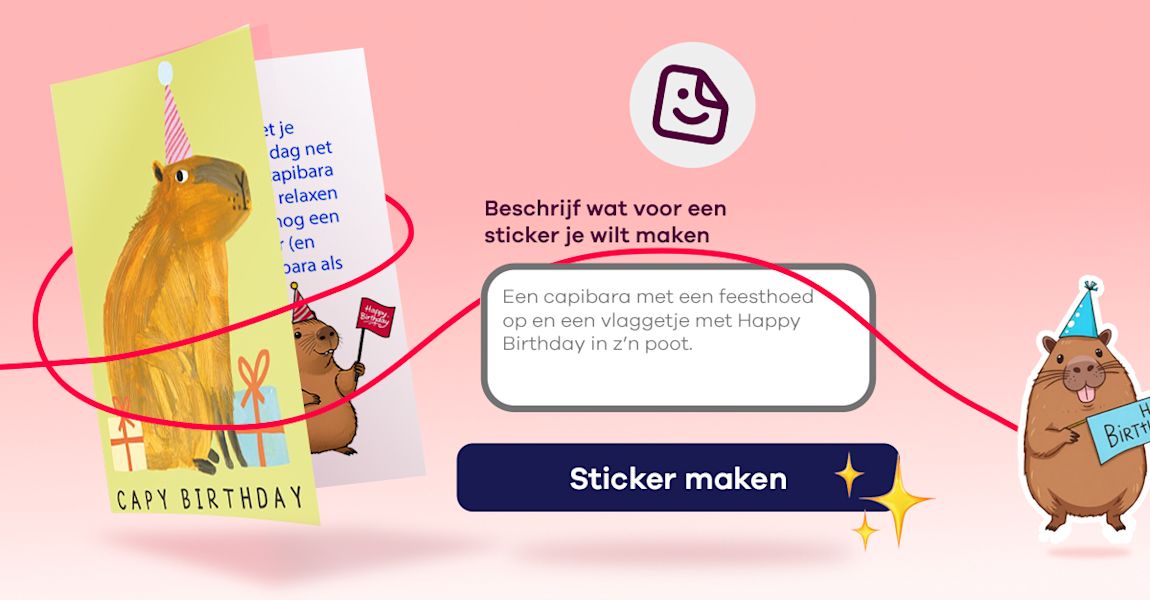 Versier je kaart met stickers, foto’s, een persoonlijke video of laat Teksthulp een uniek berichtje schrijven!