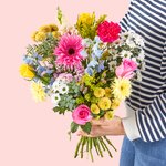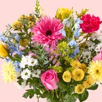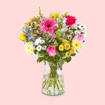 Boeket Bloesempracht is een vrolijk en rijk boeket vol frisse, speelse bloemen in een harmonieuze mix van zachte en levendige tinten. De afwisseling van grotere blikvangers en fijne, luchtige bloemen zorgt voor een levendig geheel met een natuurlijke uitstraling. Dankzij de veelzijdige samenstelling past dit boeket bij elke gelegenheid, van een feestelijke verrassing tot een warm gebaar om zomaar iemand blij te maken. Een stralend boeket dat direct sfeer brengt in huis.