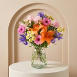 Boeket Blond Amsterdam is een vrolijk en kleurrijk boeket, ontstaan uit de samenwerking tussen Greetz en Blond Amsterdam. Het boeket weerspiegelt de speelse en herkenbare stijl van Blond Amsterdam met een levendige mix van roze, oranje, paarse en gele bloemen.