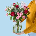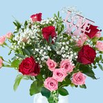 Boeket Cupido met het Chocolade Hart van Patisserie de Bijenkorf is een verfijnd en romantisch geschenk vol liefde en aandacht. De combinatie van rode en roze rozen, luchtig gipskruid en fris groen zorgt voor een zachte maar krachtige uitstraling. Het luxe chocoladehart maakt het geheel extra bijzonder en heerlijk om van te genieten. Een perfect cadeau om liefde te vieren, een romantisch moment te markeren of iemand op een elegante en zoete manier te verrassen.