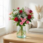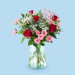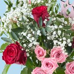 Boeket Cupido is een romantisch en liefdevol boeket dat perfect past bij bijzondere momenten. De combinatie van rode en roze rozen, fris groen en luchtig gipskruid zorgt voor een zachte maar uitgesproken uitstraling. De speelse LOVE-decoratie maakt het boeket extra speciaal en geeft het een duidelijke boodschap mee.