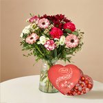 Boeket Gracieus brengt met zijn warme rood- en rozetinten een elegante en levendige uitstraling in huis. De speelse mix van bloemen zorgt voor een stijlvol boeket dat perfect past bij momenten van liefde, waardering of felicitaties. Samen met het hartvormige doosje Lindt LINDOR melkchocolade geef je een cadeau dat zowel het oog als de smaak verwent. Een prachtige en liefdevolle verrassing voor elke gelegenheid.