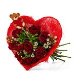 Boeket Hartendief is een romantisch en opvallend boeket dat meteen het hart verovert. De rode rozen zijn liefdevol samengebracht in een hartvorm en vormen samen met het speelse detail een krachtig symbool van liefde en genegenheid. Dit boeket is perfect om je gevoelens te uiten, iemand te verrassen op Valentijnsdag of een bijzonder moment extra speciaal te maken. Een echte blikvanger vol liefde en emotie.