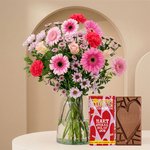 Boeket Zachtroze brengt een lieve en opgewekte sfeer in huis, met zijn zachte uitstraling en speelse samenstelling. Het boeket is perfect om iemand te feliciteren, te bedanken of gewoon een warm hart onder de riem te steken. In combinatie met de Warm Hug-kaars, die zorgt voor een knus en troostend licht, geef je een cadeau dat zowel vrolijk als hartverwarmend is.