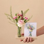 - Inhoud: Houten plankje met glazen buisje en boeketje.