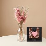 Verras met een stijlvolle combinatie van blijvende bloemen en iets lekkers met dit brievenbuscadeau met droogbloemen en chocolade. Het elegante boeketje met zachte roze tinten zorgt voor een warme, natuurlijke uitstraling en blijft langdurig mooi.