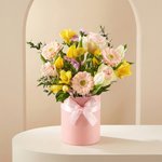 Cadeaubox Lentebloei is een vrolijk en fris bloemengeschenk dat het voorjaar perfect vangt. De kleurrijke mix van voorjaarsbloemen zorgt voor een speelse en lichte uitstraling, terwijl de elegante doos met strik het geheel extra stijlvol maakt. Een prachtig cadeau om iemand te verrassen, te feliciteren of een zonnig moment te vieren. Ideaal voor elke gelegenheid waarbij je een gevoel van lente en positiviteit wilt meegeven.