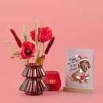 Breng warmte in de winterdagen met dit hartverwarmende cadeaupakket. De sfeervolle kerstboomvaas gevuld met rode droogbloemen geeft direct een feestelijke, knusse uitstraling, terwijl het rode windlicht voor een zacht, gezellig kaarslicht zorgt. Samen vormen ze een stijlvol en warm geheel dat perfect is om iemand te verrassen tijdens de feestdagen, als bedankje of gewoon om te laten weten dat je aan ze denkt. Een compact, maar bijzonder geschenk dat elk interieur een vleugje kerstgezelligheid geeft.