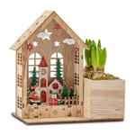 Breng instant kerstsfeer in huis met dit sfeervolle houten kersthuisje, compleet met een vrolijk winters tafereel en een echte hyacint die langzaam tot bloei komt. Het warme hout, de subtiele lichtjes en de speelse details maken het een charmant decoratiestuk dat elke ruimte extra gezellig maakt. Perfect om cadeau te geven of om je eigen huis in kerststemming te brengen. Een klein huisje vol winterse magie.