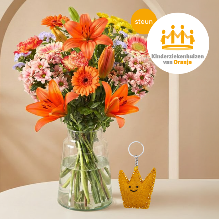 Deze limited edition kroon-sleutelhanger is ontworpen door IKPAKJEIN in samenwerking met Stichting Kinderziekenhuizen van Oranje. Met de aankoop van deze sleutelhanger steun je het werk van de stichting en help je mee om de zorg en het verblijf van zieke kinderen in Nederlandse academische kinderziekenhuizen* elke dag een beetje beter te maken.