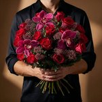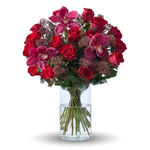 Dit luxe boeket, samengesteld door Dave Roelvink, is een echte eyecatcher met een krachtige en stijlvolle uitstraling. Dieprode rozen vormen de basis en worden elegant gecombineerd met opvallende orchideeën en verfijnd groen, wat zorgt voor een rijke en luxe compositie. Het boeket straalt passie, klasse en exclusiviteit uit en is perfect om een blijvende indruk te maken. Het luxe chocoladehart maakt het geheel extra bijzonder en heerlijk om van te genieten. Een bijzonder cadeau voor een speciale gelegenheid, of om iemand op een stijlvolle manier te verrassen.