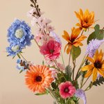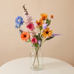 Breng kleur en vrolijkheid in huis met het zijden kunstboeket Sprankel. Dit speelse boeket combineert levendige tinten zoals oranje, roze, paars en blauw tot een frisse en dynamische uitstraling.