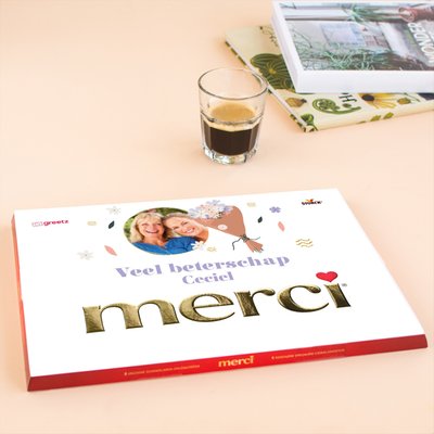 Merci | Veel Beterschap met eigen foto en naam | 675g