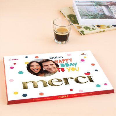 Merci | Happy Bday met eigen foto en naam | 675g afbeelding 1