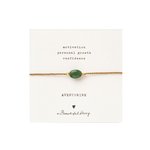 Op avontuur gaan is sowieso veel spannender. Aventurijn heeft er altijd zin in. Ken jij iemand die wat extra zelfvertrouwen nodig heeft voor een spannende stap in je leven? Aventurijn loopt vrolijk mee. Samen wordt het het begin van iets feestelijks. De armband is van een katoenen draad en heeft een aventurijn edelsteen.