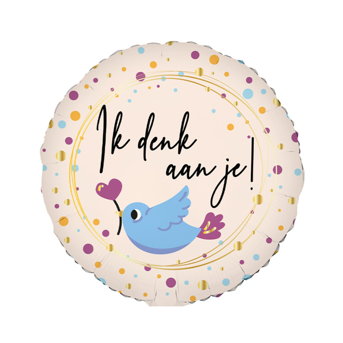 Speciaal voor iemand die je wilt laten weten dat je aan hem of haar denkt. Met deze Ik denk aan je ballon stuur je een warm gebaar dat zeker gewaardeerd wordt. Perfect voor een steuntje in de rug, een moeilijke periode of gewoon zomaar. Iedere ballon kan met een kaart worden verstuurd, de kaart wordt vastgemaakt aan de ballon. Zorg voor een grote verrassing door deze helium ballon te versturen.