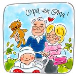 Een leuke kaart voor de geboorte van een kindje ontworpen door Blond Amsterdam waarop opa en oma gaan wandelen met hun kleinkind.