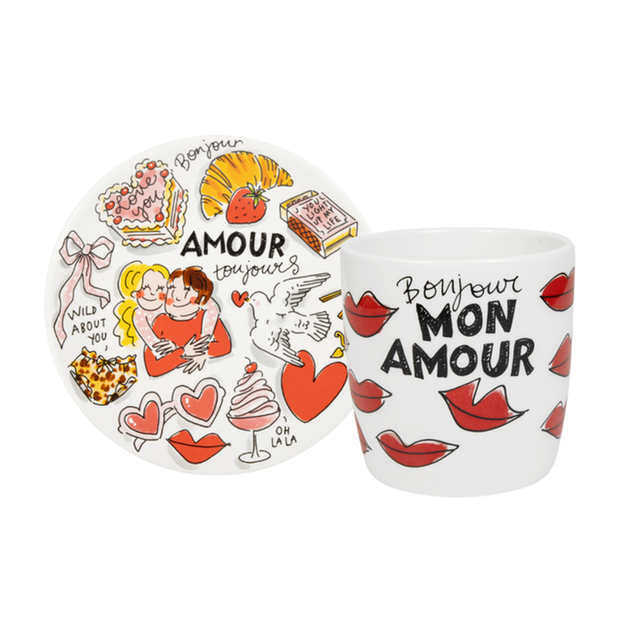 Liefde op tafel met dit Blond Amsterdam Pakket. Het romantische Valentijnsbord en de Bisous cappuccinobeker vol kusjes en Franse charme maken elk ontbijt of koffiemoment extra speciaal. Een perfect liefdescadeau voor jezelf of iemand die je dierbaar is.