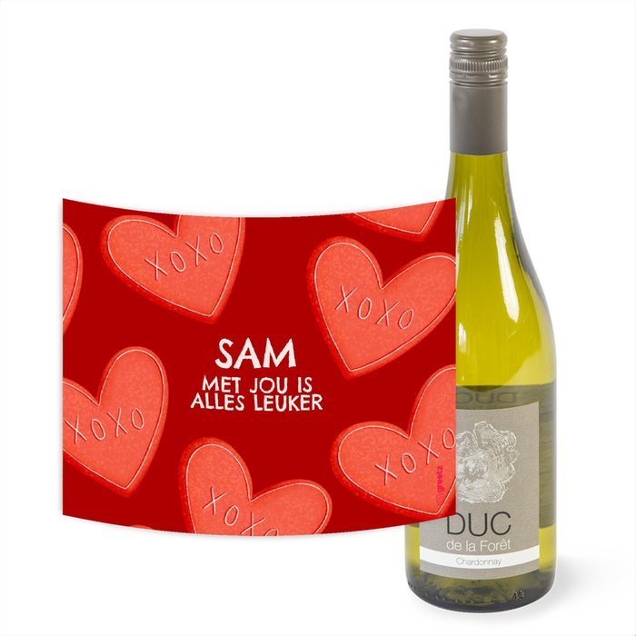 Verras je geliefde met deze geweldige fles Chardonnay met de tekst: met jou is alles leuker! Maak het cadeau extra persoonlijk door een eigen naam toe te voegen. Met dit cadeau zorg je gegarandeerd voor een lach op iemands gezicht.
