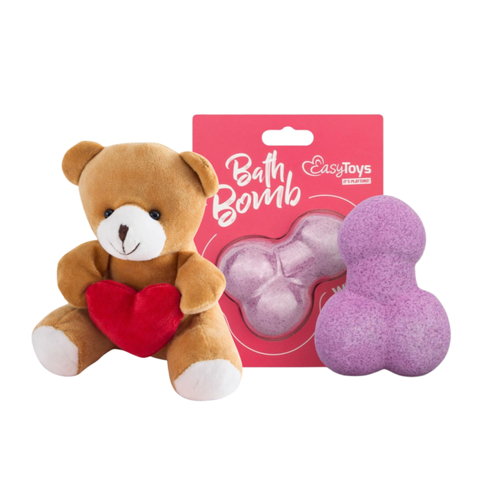 Een speels en liefdevol cadeau om iemand echt te verwennen. De unieke bruisbal van Easy Toys viert de mannelijke vorm en zorgt voor een ontspannend badmoment met een warme kersengeur die lichaam en geest tot rust brengt. Voeg daar het schattige pluche beertje aan toe, dat een rood hart vasthoudt, en je hebt een cadeau dat zowel humor als liefde uitstraalt. Perfect om jezelf te verwennen of om een partner, vriend of geliefde op een originele en lieve manier te verrassen.