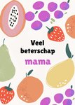 Is jouw moeder ziek? Stuur haar dan een beterschapskaart van Greetz! Op deze kaart staat: veel beterschap mam. De rest van de kaart is versiert met fruit.