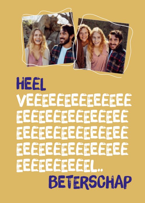 Is jouw broer ziek en kan hij wel een steuntje in de rug gebruiken? Stuur hem dan een leuke beterschapskaart van Greetz! Op deze kaart staat: heel veel beterschap. Ook kun je een foto toevoegen.