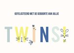 Feliciteerd met dit leuke geboortekaartje met de tekst; Gefeliciteerd met de tweeling TWINS.