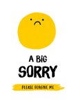 Een lieve sorry kaart met smiley en de tekst: A big sorry please forgive me.