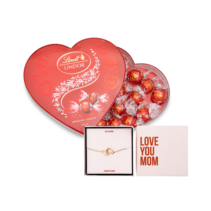 Laat je moeder zien hoe bijzonder ze is met de Hart van goud | Love You Mom Bracelet & Lindt LINDOR. Een liefdevolle combinatie van een blijvend sieraad en een heerlijk genietmoment.