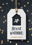 Wat zijn ze hip hè, de kaartjes van Luckz! Ze zijn ontworpen door Erwin van Hesteren. Hij ontwerpt originele en unieke kaartjes voor ieder moment. De kaarten worden gekenmerkt door een frisse stijl: trendy, stijlvol en een beetje stoer. Vrolijke elementen als slingers, fotolijstjes en confetti worden gecombineerd met patronen en andere structuren, zoals hout. De kaartjes zijn gemakkelijk aan te passen, zodat jij je eigen perfecte kaartje kunt creëren. Kijk eens wat een hippe uitnodiging voor je housewarming! Op dit kaartje van Luckz zie je label waar je info kunt zetten van je feestje. Ook zie je een zwart huisje op de label staan met een hartje erin.