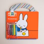 Deze Nijntje knutselmap bevat potloden, kunststof sjablonen, stickers, achtergronden en papier. Hiermee kun je de mooiste kunstwerken maken.