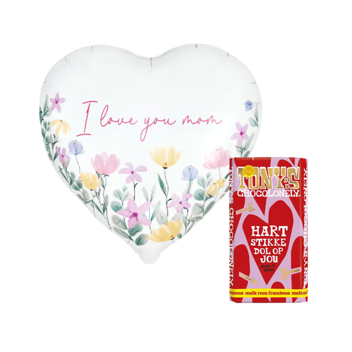 Laat je moeder weten hoeveel je van haar houdt met deze Love mom | Ballon & Tony's Chocolonely set. Een perfecte combinatie van een liefdevol gebaar en iets lekkers om van te genieten.
