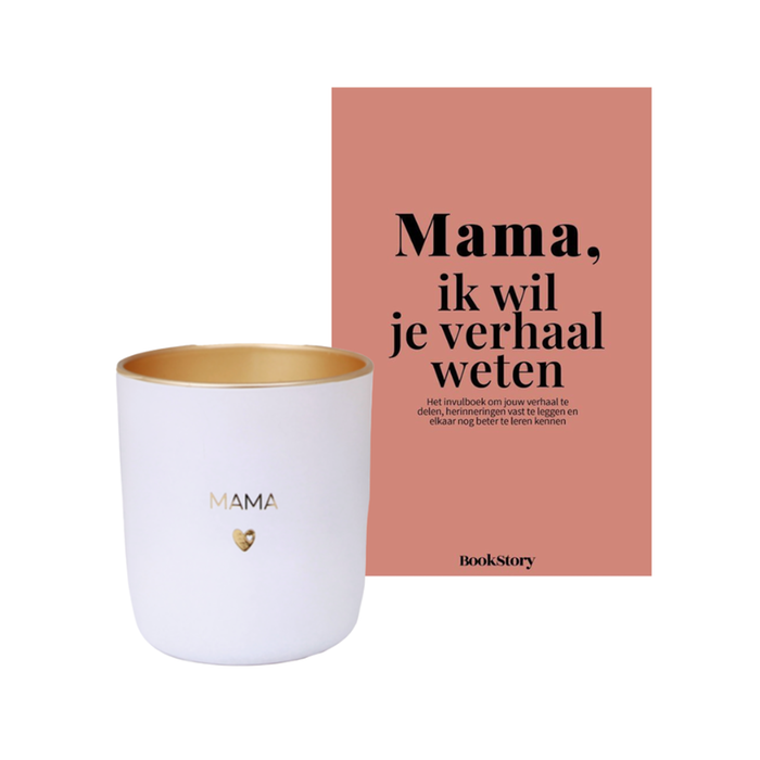 Geef een cadeau met echte betekenis met de Mama’s verhaal | Invulboek mama & Geurkaars lieve mama. Een combinatie van herinneringen vastleggen én ontspannen genieten, speciaal voor haar.