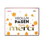 VROLIJK PASEN! Wie verras jij tijdens de paasdagen? Met deze vrolijke box van Merci zorg je gegarandeerd voor een lach op iemand zijn gezicht. Maak je chocolade cadeau extra persoonlijk en voeg een eigen naam toe. We printen jouw ontwerp op een losse cover, niet op het doosje zelf. De ontvanger kan jouw creatie dus gemakkelijk bewaren! Maak het cadeau compleet en voeg een bijpassende kaart toe.
