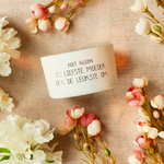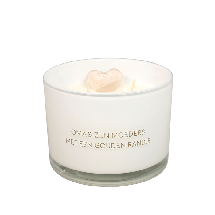 Verras je oma met deze prachtige Oma's zijn moeders met een gouden randje kaars van My Flame Lifestyle. Een liefdevol cadeau met een warme boodschap, speciaal voor een oma die goud waard is. Deze heerlijke geurkaars is gemaakt van biologische sojawas en wordt geleverd in een luxe witte giftbox. De geur Fresh Cotton is een warme combinatie van verse bloemen, gouden perzik, sensuele kasjmier muskus en zachte vanille. Dankzij de twee lonten en een brandtijd van circa 60 uur geniet je extra lang van een sfeervol moment in huis.