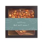 Dit luxe chocolade-noten hart van Patisserie de Bijenkorf is een hartverwarmend gebaar om iemand beterschap te wensen. Het hart is gemaakt van romige chocolade en rijkelijk gevuld met knapperige noten, en wordt omhuld door een stijlvolle sleeve met de tekst “Get well soon!” (met personaliseerbare naam). Een smakelijk en persoonlijk cadeau om iemand een oppepper te geven en te laten weten dat je aan ze denkt tijdens het herstel.