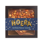 Vier een bijzonder moment met dit luxe chocolade-noten hart van Patisserie de Bijenkorf. Het hart is rijkelijk gevuld met romige chocolade en knapperige noten en verpakt met een vrolijke Hoera-sleeve, die desgewenst te personaliseren is met een naam of korte boodschap. Een stijlvol en smaakvol cadeau om iemand te feliciteren met een verjaardag, jubileum of andere feestelijke gelegenheid.