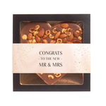 Verras het kersverse bruidspaar met dit elegante chocolade-noten hart van Patisserie de Bijenkorf. Het hart is gemaakt van romige chocolade en rijkelijk gevuld met knapperige noten, en wordt stijlvol verpakt met een luxe Congrats to the new Mr & Mrs-sleeve. Een smaakvol en feestelijk cadeau om een huwelijk te vieren en het gelukkige paar te feliciteren met deze bijzondere mijlpaal.