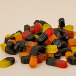 Glucosestroop, suiker, zetmeel, gelatine, zoethoutwortelextract, salmiakzout, voedingszuur (melkzuur), gekaramelliseerde suiker, plantaardige oliën (kokos, palm), aroma’s, concentraat van (wortel, zwarte bes), glansmiddelen (bijenwas), kleurstoffen (paprika extract, curcumine).