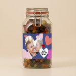 Ben je nog op zoek naar een romantisch cadeau voor je lover? Onze tip: deze glazen snoeppot! Bijna een halve kilo aan overheerlijk snoep. Wie smelt daar nu niet van ;). Maak het cadeau extra persoonlijk en voeg een foto van jullie samen toe. Dat wordt smullen! Zo geef je niet alleen een lekkere, maar ook een persoonlijke verrassing!