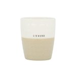 Hey leukerd! Bij het zien van deze koffiemok van Zusss maakt je hart een sprongetje. Deze leuke mok heeft twee kleuren, wit en oudroze. De mok is voorzien van de tekst: kusss. De koffiemok heeft een diameter van 7,5cm en is 8,5cm hoog. Je combineert deze ook leuk met de andere aardewerken items van Zusss. Zusss: basic, stoer, uniek en een tikkeltje eigenwijs.