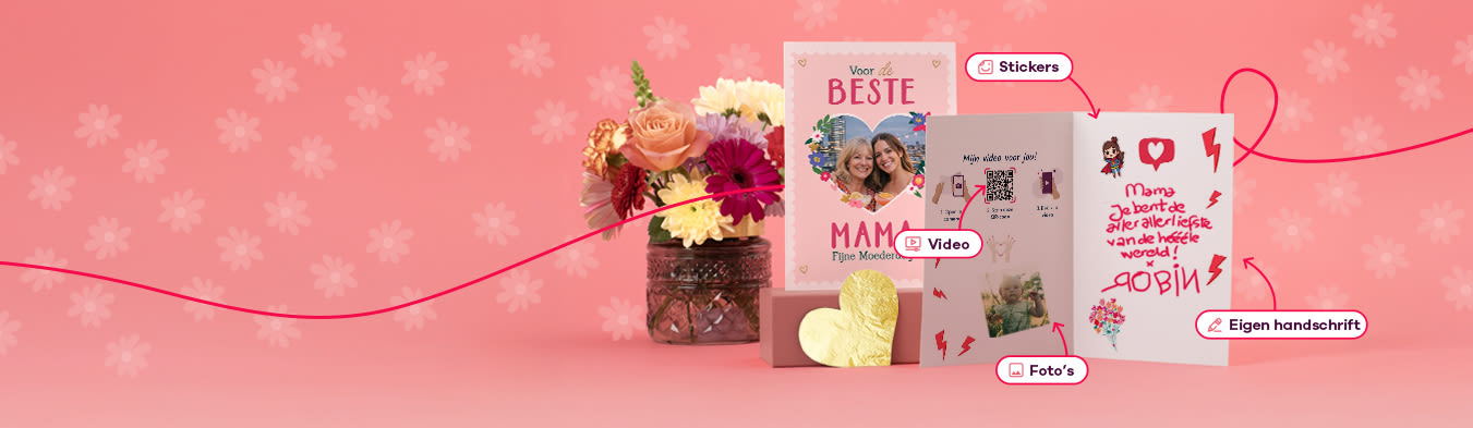 Laat iets van je horen. Maak net zoals vroeger een creatief knutselwerkje van je kaart met jullie favoriete foto, de leukste stickers of zelfs een lieve videoboodschap erin. Dat vindt toch iedere moeder leuk om te ontvangen?