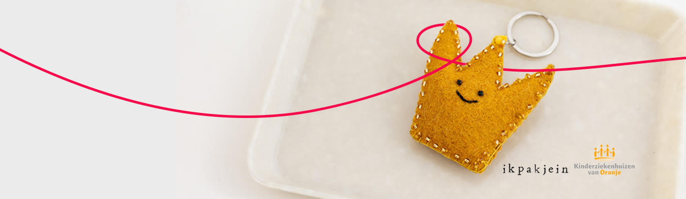 Deze bijzondere kroon sleutelhanger is ontworpen door IKPAKJEIN in samenwerking met Stichting Kinderziekenhuizen van Oranje. Met de aankoop hiervan geef je meer dan een mooi gebaar; voor elke verkochte kroon wordt €3,50 gedoneerd aan de stichting. Zo help je mee om de zorg én het verblijf van zieke kinderen in Nederlandse academische kinderziekenhuizen* elke dag een beetje fijner te maken.Â