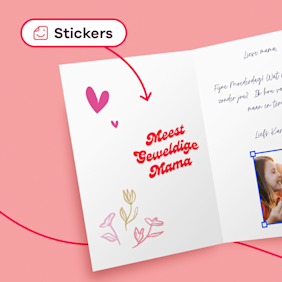 Kies je kaart en maak 'm uniek met tekst, foto's en stickers.