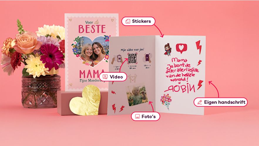Maak deze Moederdag bijzonder met een verrassing, speciaal gemaakt voor mama! Met jullie favoriete foto, kleurrijke moederdagstickers, of een handgeschreven boodschap laat je haar weten hoe speciaal ze voor je is. Of spreek samen met de kids een audioberichtje in. Hoe creatiever, hoe leuker! Zo geef jij altijd meer dan een moederdagkaart.