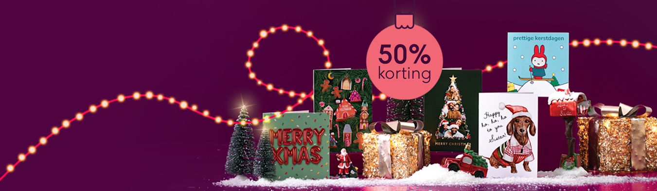 Bestel je kerstkaarten nu nog met extra veel korting: 50% korting op 5+ kaarten met code KERST50
