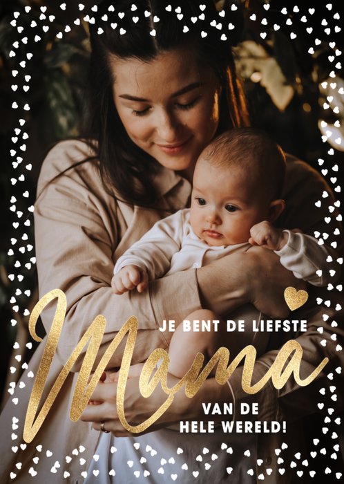 Schattige moederdag kaart met foto en hartjes kader. Plaats je eigen foto