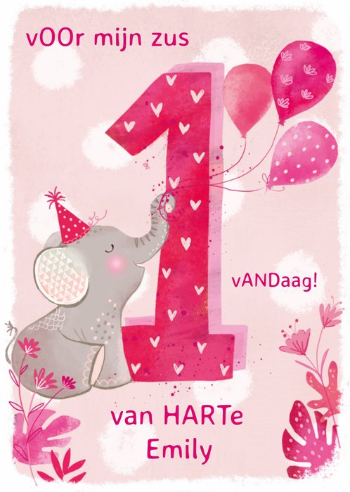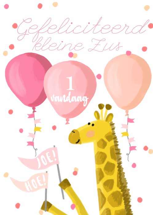 Leuke verjaardagskaart met giraf en de tekst: Een jaar vandaag