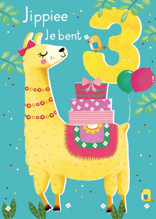 Vrolijke verjaardagskaart met lama en leeftijd.