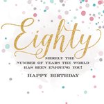 Leuke verjaardagskaart met de tekst: Eighty merely the number of years the world has been enjoying you! Happy birthday